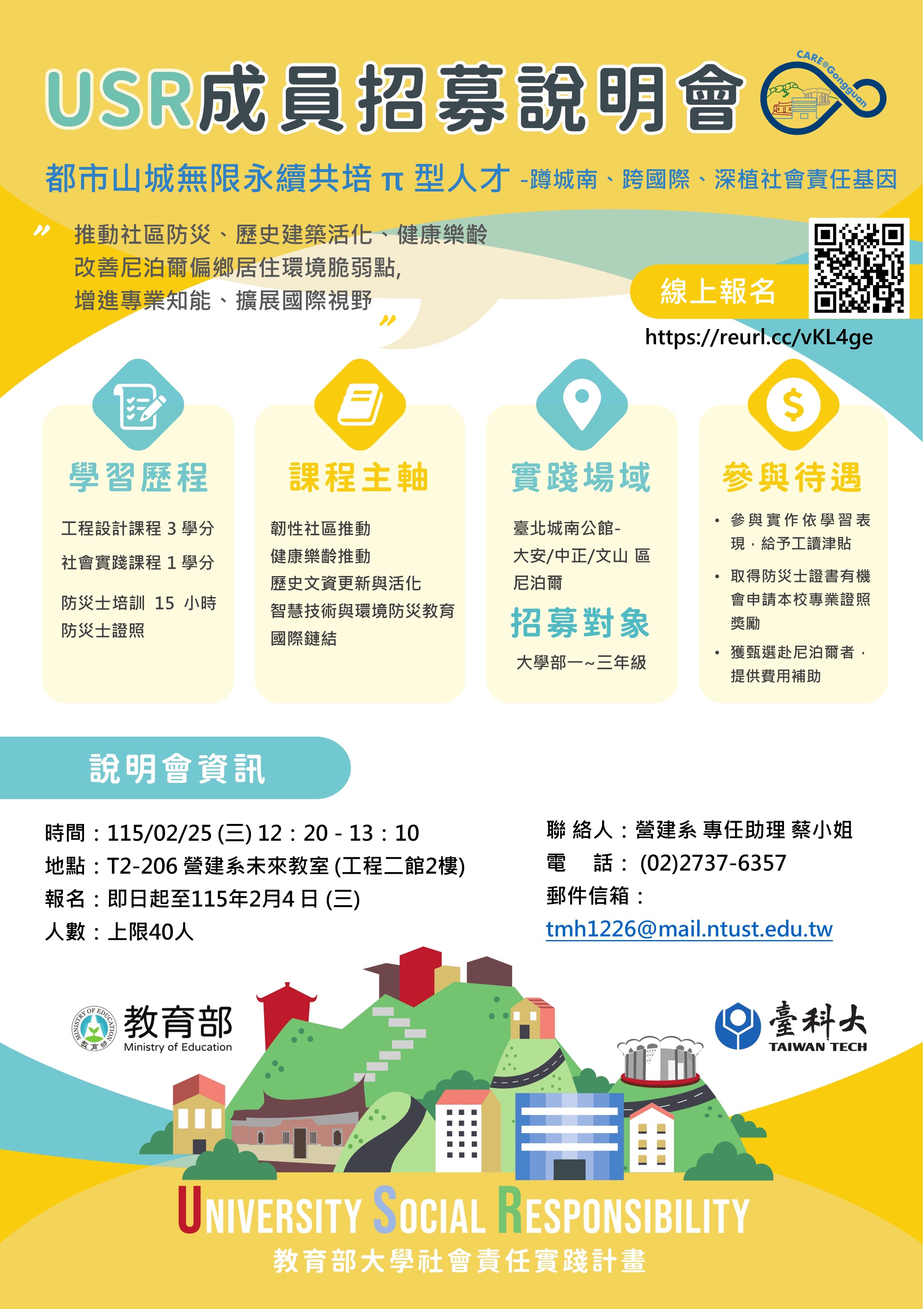 意者請優先採線上報名或洽臺科大營建系USR專任助理蔡小姐